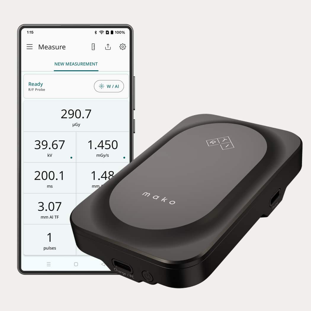 Il multimetro Mako di produzione RTI completo di Windows Tablet da 10″ o PC è una soluzione all’avanguardia per controlli di qualità rx, dedicato a misure in grafia, scopia, mammografia, CT e dentale (endorali, panoramici e CBCT). La nuova tecnologia dei sensori permette di ottenere la massima precisione (incertezza ±1.5 % kVp su tutto il range di misura), efficienza e versatilità.
